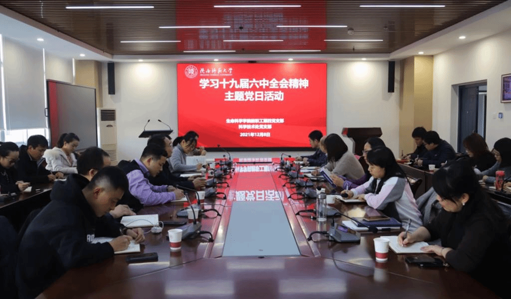 12月8日下午,生科院教职工第四党支部、科技处党支部在长安校区格物楼会议室联合开展学习十九届六中全会精神主题党日活动。副校长董治宝出席会议。生科院副院长杜祥云及两个支部的全体党员参加会议。