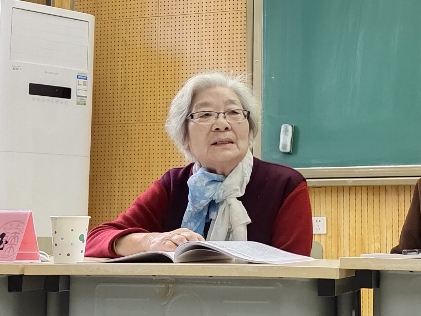 黄维玉老师回忆了自己年轻时看到旧中国的黑暗和落后,看到革命者不怕牺牲,前赴后继的光辉业绩,解放后深切感受到新中国的辉煌成就。她深情的说:“我们革命的胜利十分来之不易,建设好我们这样的人口大国非常不容易,同学们一定要好好珍惜中国共产党领导人民取得的辉煌成就,好好学习,好好工作。”